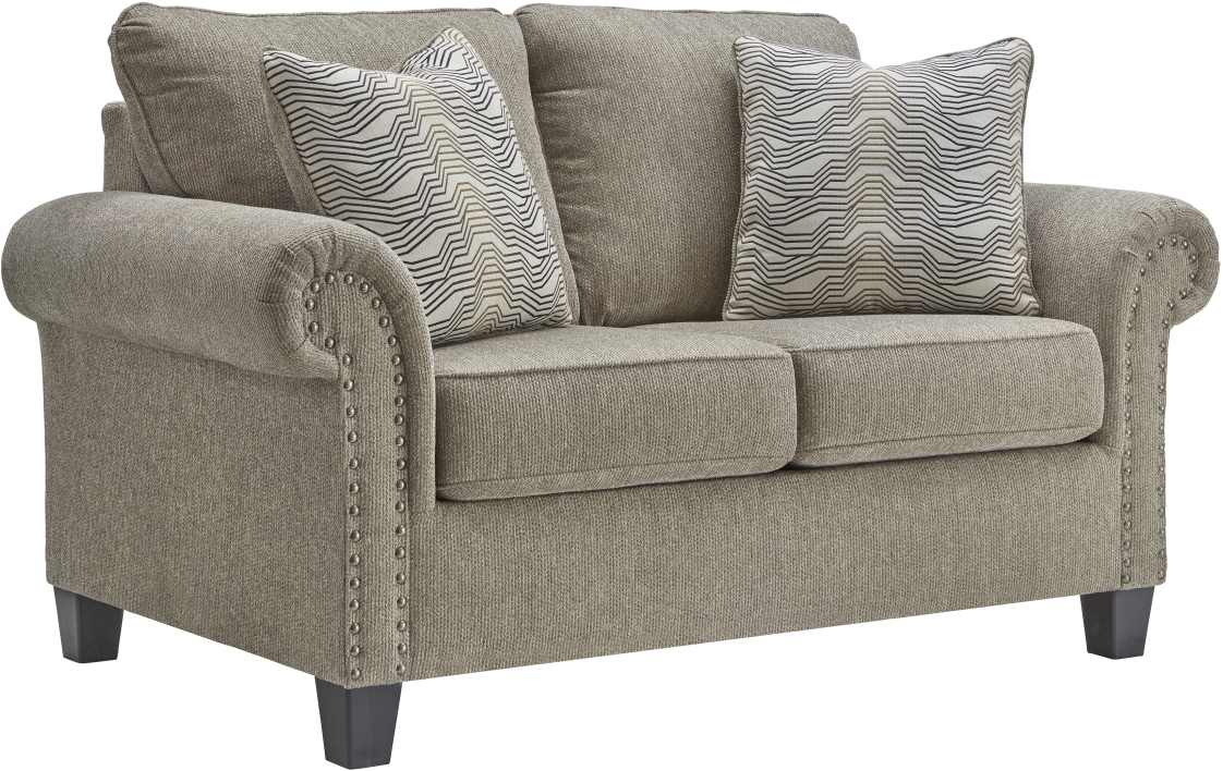 Sporting traditional elements including roll arms with nailhead trim, this loveseat gives here-and-now relevance to a classic style. The lovely pewter shade of the textured chenille upholstery brings a relaxed sensibility. Mix in contrasting tapered legs for a striking look you're sure to love for years to come.Read More
