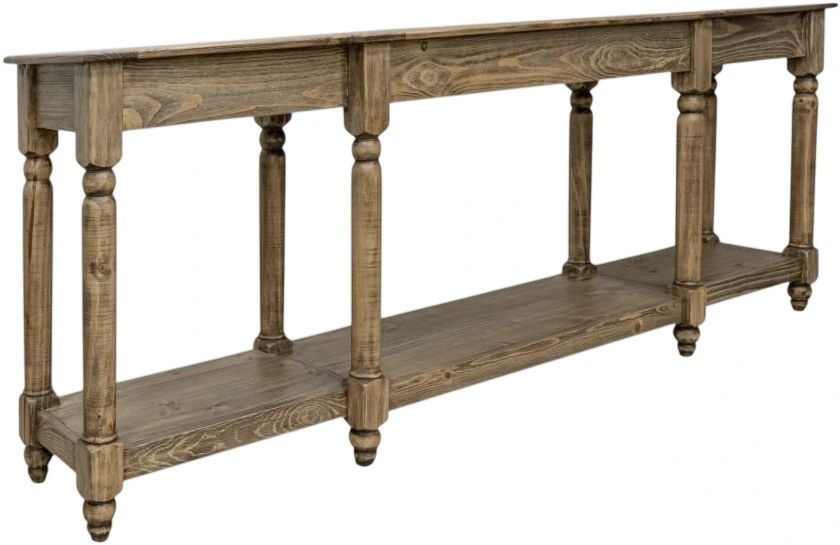 Tiffany sofa tables are handcrafted from solid pine wood, featuring stunning hand-turned legs. This piece will add a timeless classic touch to your space. Designed with one bottom shelf, it offers both beauty and function, providing convenient storage or display space while showcasing exceptional craftsmanship and elegant style.Read More