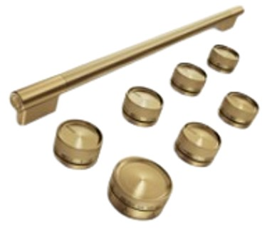 Personalize your hardware with a Handle and Knob Accessory Kit in Brass. Designed to coordinate with kitchen faucets and cabinet pulls, the curated palette of mixed metals complements all KitchenAid® exterior finish options, so you can mix and match with confidence.Read More