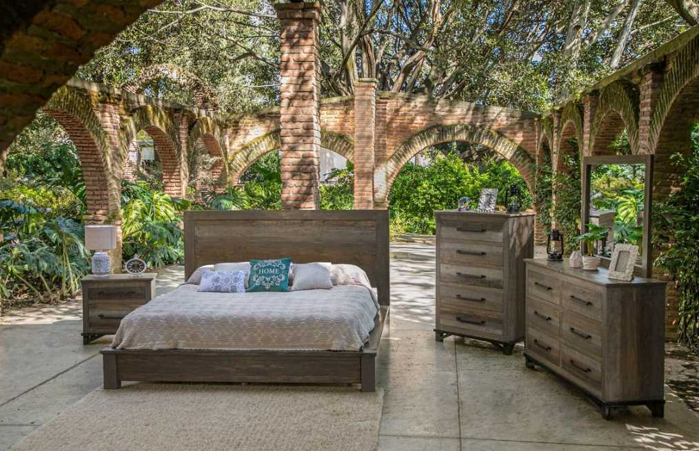 The Loft Brown Bedroom Collection features 100% solid Pine wood construction and a six-step, hand-painted finish in a gray and brown color scheme.