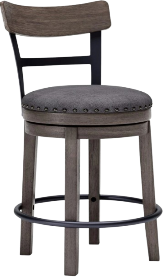 Bring a relaxed yet refined sense of good taste to a space with this upholstered swivel bar stool. The sturdy wood frame with contoured backrest is beautified with an antiqued gray wash finish that’s easy on the eyes.Read More