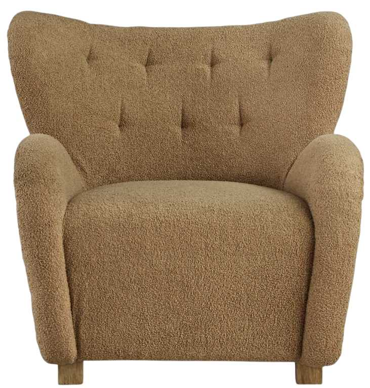 High style meets relaxation in this accent chair. Cozy faux shearling fabric keeps the look contemporary without compromising on comfort. A tufted wingback design and dramatic slope arms add high-fashion flair. It's the perfect place to curl up and enjoy your favorite book or podcast.Read More