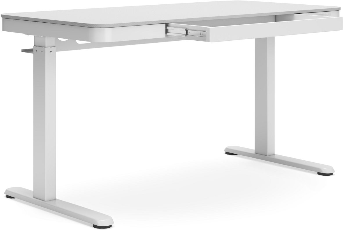 Work smarter (and look cool doing it) with the new-age efficiency of this adjustable height home office desk. Its streamlined design is ideal for working from home, with a powered height adjustment feature enabling you to find your ultimate comfort position. The super-sleek white desk also includes two types of USB charging ports and a smooth-gliding drawer, so you can have elite form and function all in one.Read More