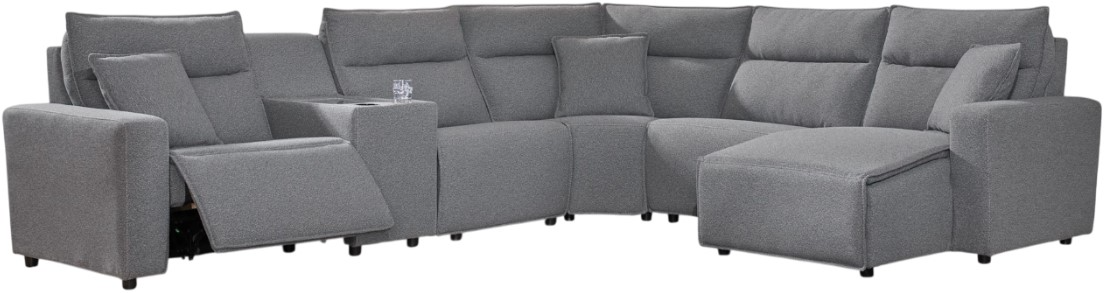 Includes 6 Modular Pieces: Left-arm facing power recliner, 2 armless chairs, console with storage, wedge and right-arm facing power recliner