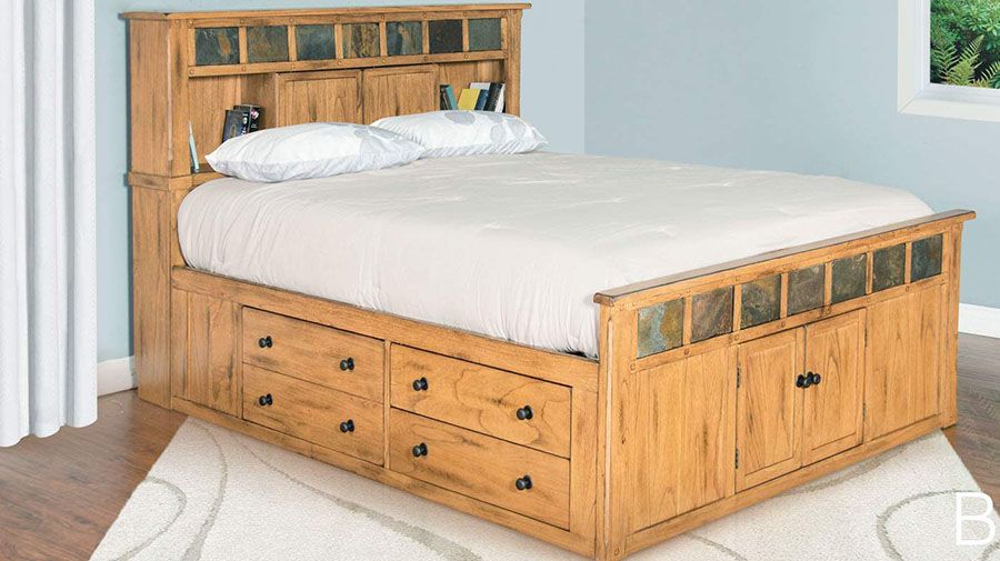 Sunny Designs Sedona Eastern King Storage Bed with genuine slate accents and rustic oak finishRead More