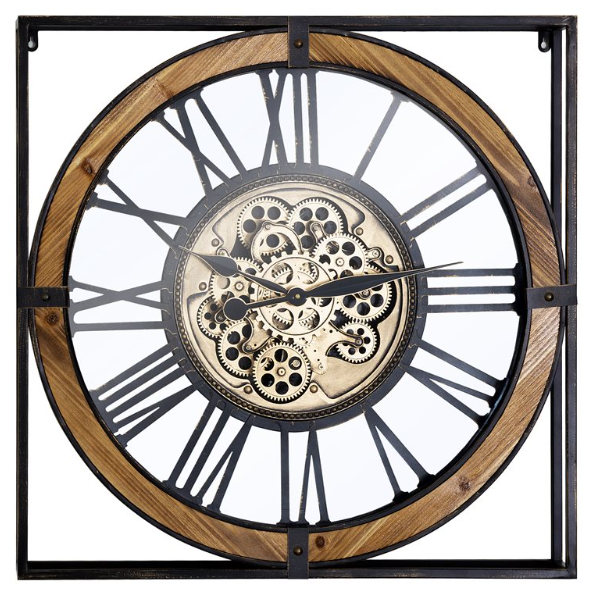 This distinctive wall clock merges the elegance of vintage design with the intrigue of industrial mechanics. The round diameter is inside metal. The Roman numerals and aged metal frame exude a classic charm, while the visible gears and sweep of the hands are protected.Read More
