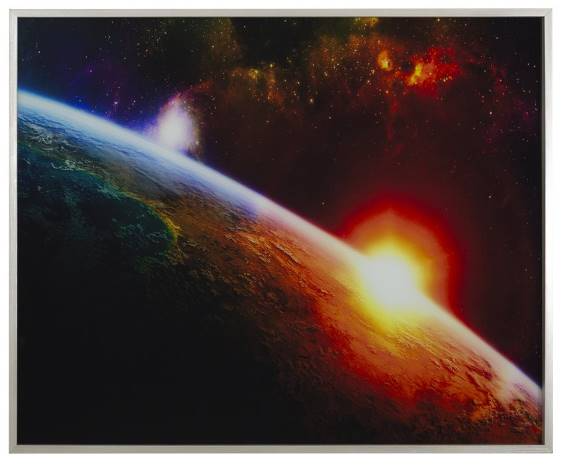 View a spectacular sunset from outer space, This high-resolution image is provided by NASA and is printed and mounted on tempered glass for safety. A champagne silver frame highlights the image as it is displayed on your wall.Read More