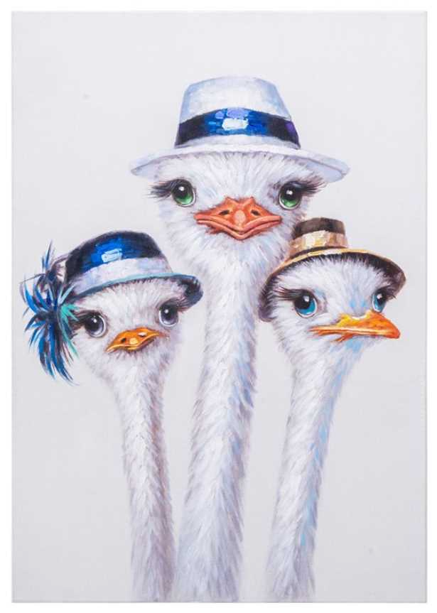 This canvas artwork is a whimsical and charming piece that captures the playful and endearing nature of these beautiful birds. This group of three is each wearing a different hat, reflecting the lighthearted and playful nature of the scene. Their piercing looks draw the viewer in to enjoy their charming stance.Read More